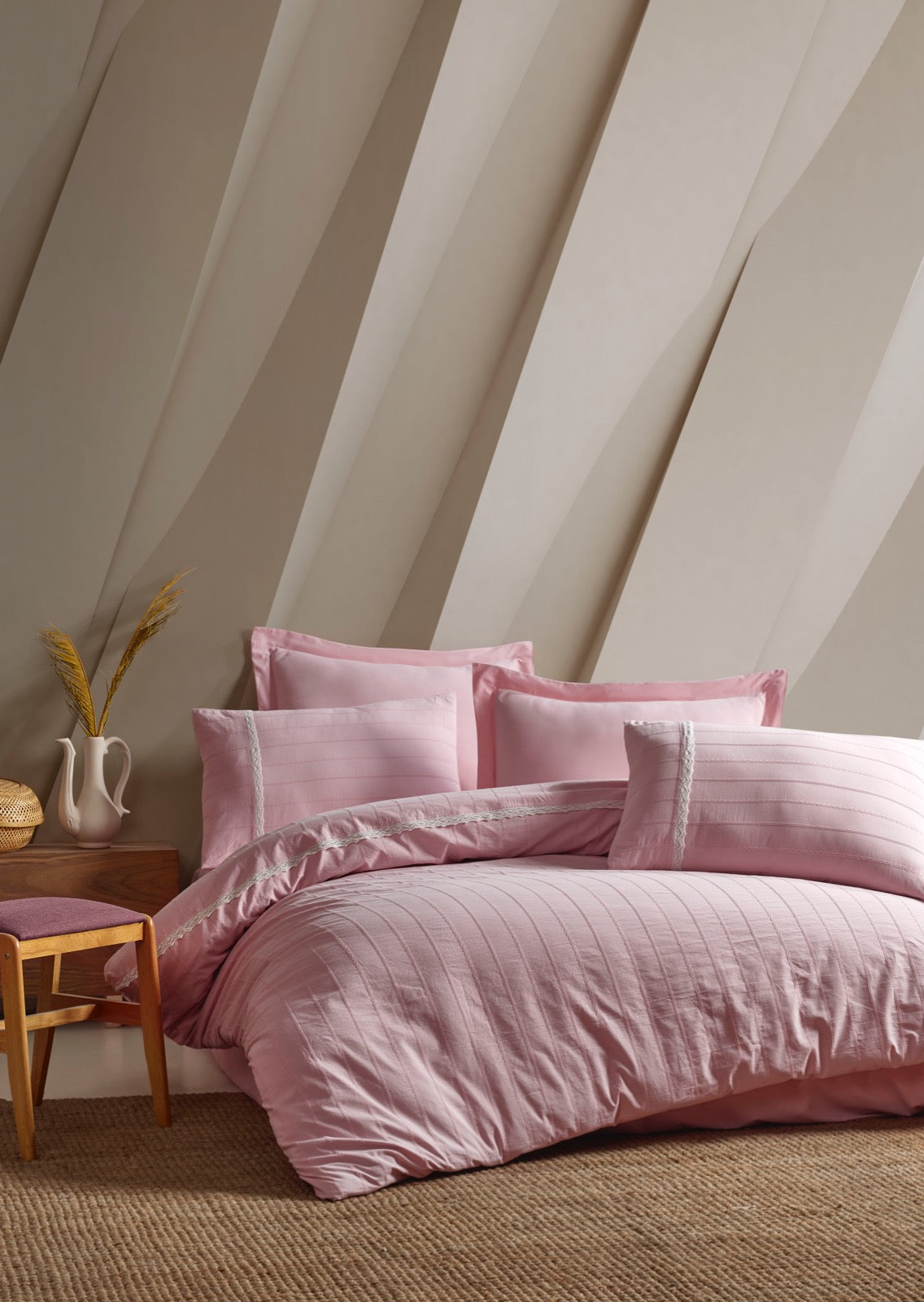 Şaheser Jasmin Natural Look Washed Doppelbett-Bettwäsche-Set 6-teilig